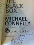 It was a great event. Michael Connelly is a wonderful crime novelist. His main character is LA homicide detective Hieronymus Bosch (Harry), who is motivated by his mother’s murder to solve crimes. The new Harry Bosch book is The Black Box, wherein Harry revisits a cold case to solve the 1992 murder of a Danish photojournalist during the LA riots following the Rodney King verdict. (I can’t believe this was 20 years ago.) I am on page 106. Review to come.
